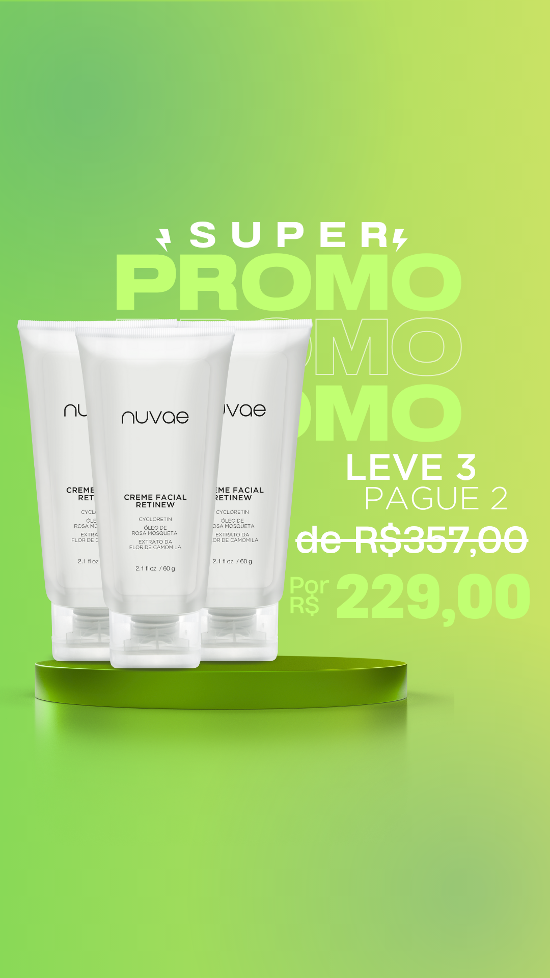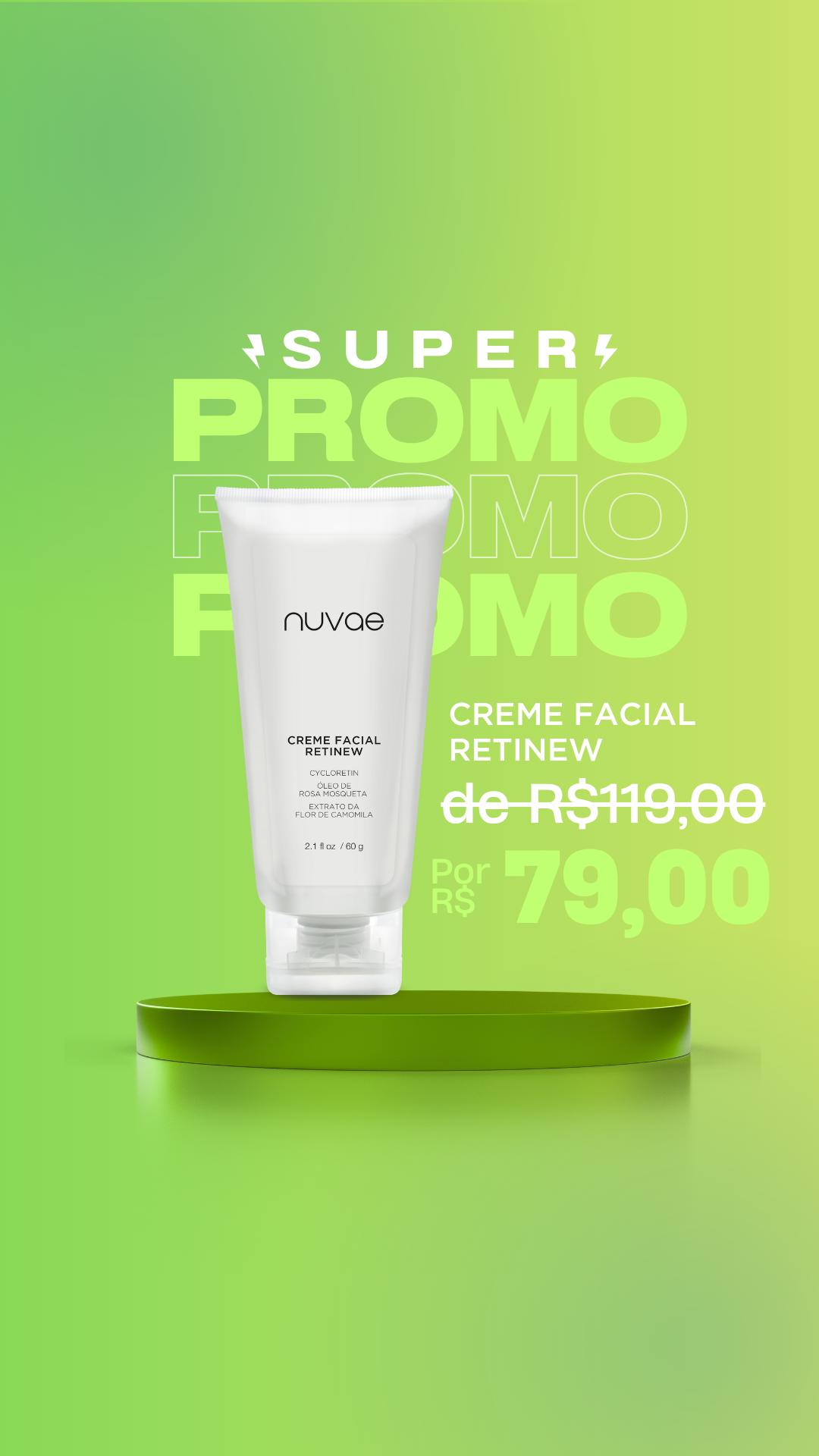 O Creme Facial Nuvae Retinew com CycloRetin™ combina tecnologia de ponta e ativos poderosos para oferecer renovação celular, hidratação intensa e ação antienve-lhecimento. Desenvolvido para quem busca uma pele mais firme, uniforme e luminosa, ele suaviza linhas de expressão, melhora a elasticidade e nutre profundamente, proporcionando um toque sedoso e radiante.